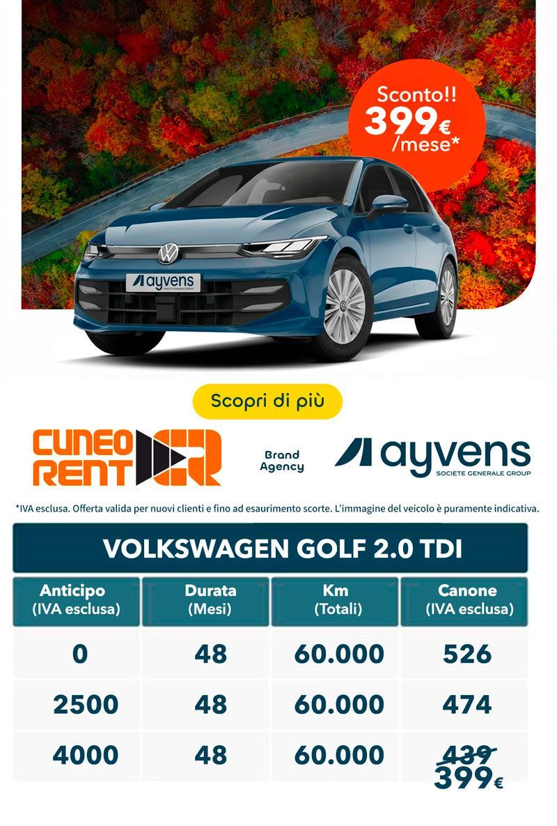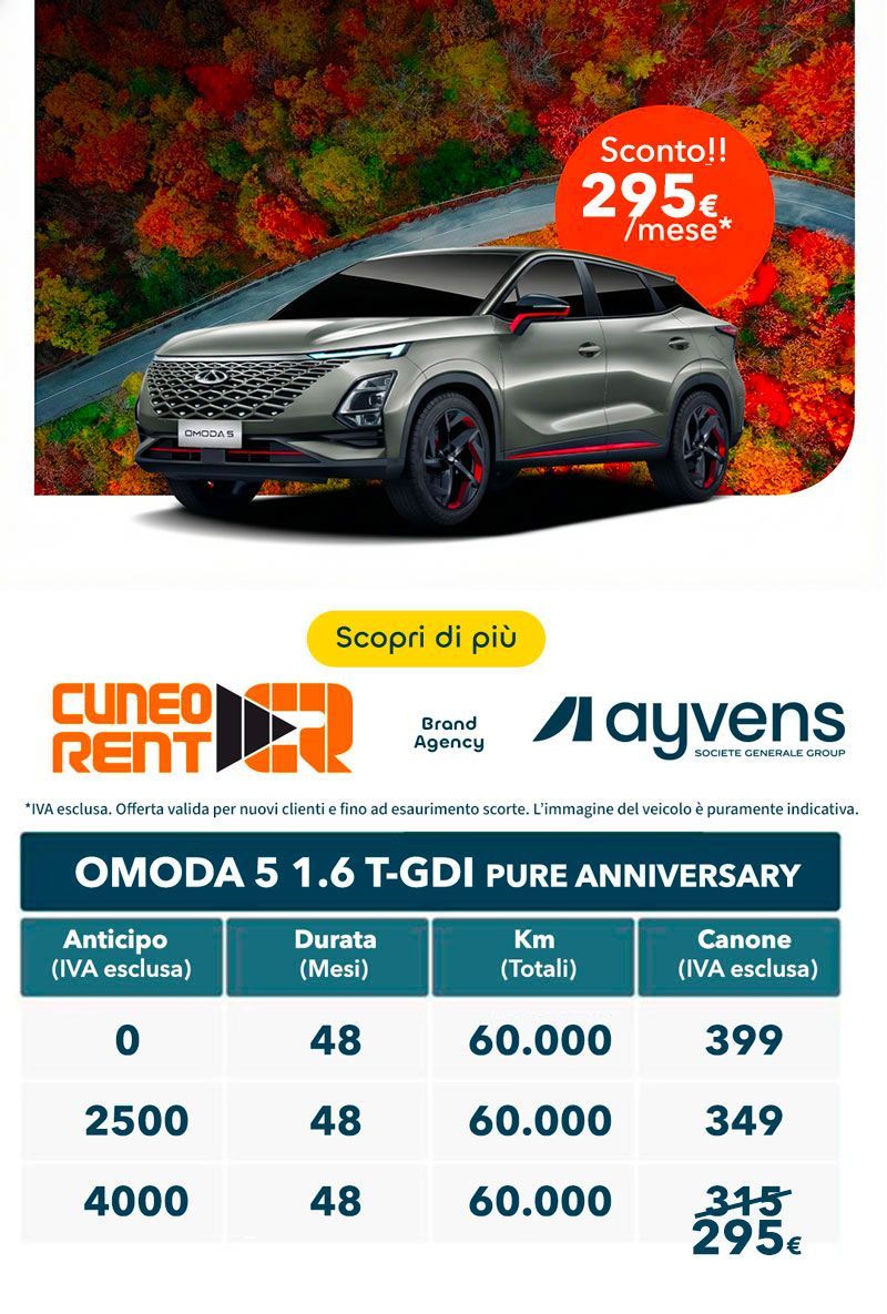 Ogni mese pensiamo a qualcosa di speciale per te, con promozioni per il noleggio auto con tariffe super vantaggiose. Hai un viaggio di lavoro o di piacere in programma a breve? Ecco le nostre imperdibili offerte per l’autonoleggio giornaliero, settimanale o mensile! Da Cuneo Rent, proponiamo sconti esclusivi che ti permetteranno di vivere un'esperienza di noleggio senza pensieri. Che tu abbia bisogno di un'auto per un breve fine settimana o per un mese intero, troverai sempre la soluzione più adatta e conveniente. Non perdere l'opportunità di approfittare delle nostre tariffe competitive e inizia a pianificare il tuo prossimo viaggio con serenità. Visita il nostro sito o contattaci direttamente per scoprire tutte le offerte del mese!